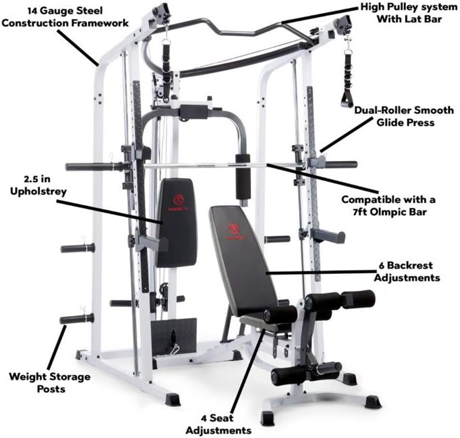 Marcy Smith Cage Workout Machine Full Body Strength Training Home Gym Equipment System with Leg Developer, Press Bar, PEC Deck, and Squat Rack